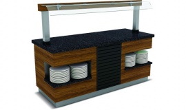 - Granit üst tabla. - Dekoratif ahşap kaplama. - Paslanmaz alt baza. - tabak rafı.