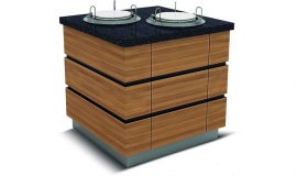 - Granit üst tabla. - Dekoratif ahşap kaplama. - Paslanmaz alt baza. - tabak rafı.
