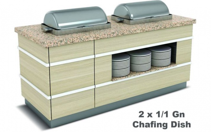 - Granit üst tabla. - Dekoratif ahşap kaplama. - Paslanmaz alt baza. - tabak rafı.