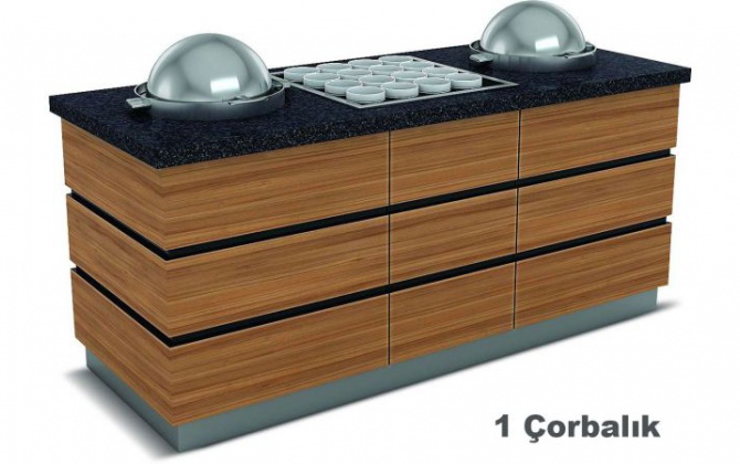 - Granit üst tabla. - Dekoratif ahşap kaplama. - Paslanmaz alt baza.
