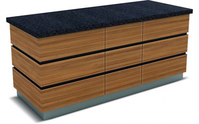 - Granit üst tabla. - Dekoratif ahşap kaplama. - Paslanmaz alt baza.