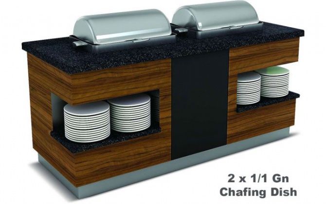 - Granit üst tabla. - Dekoratif ahşap kaplama. - Paslanmaz alt baza. - tabak rafı.