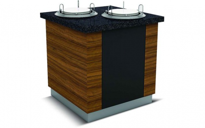- Granit üst tabla. - Dekoratif ahşap kaplama. - Paslanmaz alt baza.