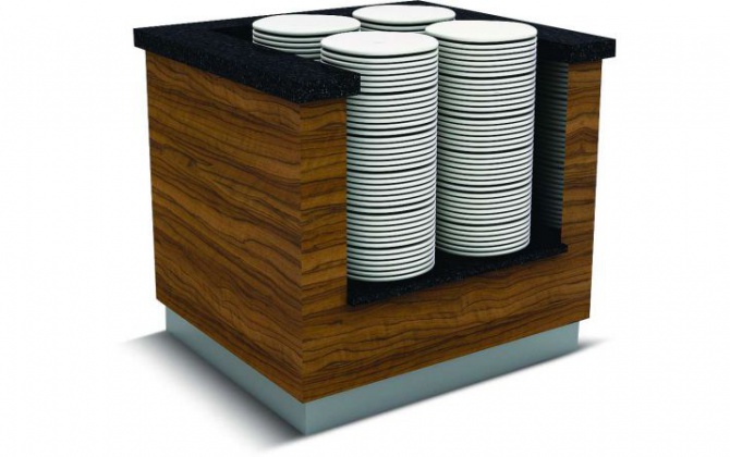 - Granit üst tabla. - Dekoratif ahşap kaplama. - Paslanmaz alt baza.